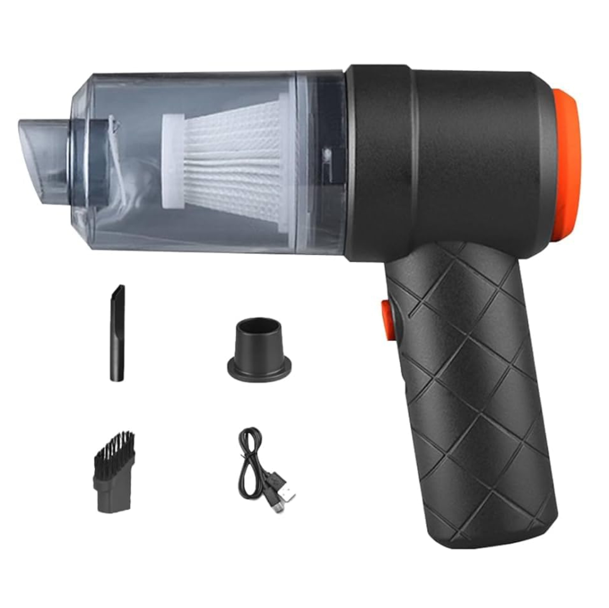 Complementa la experiencia con la mini aspiradora portátil, perfecta para eliminar polvo, migas y suciedad en tu vehículo, casa u oficina. Compacta pero potente, garantiza limpieza profunda sin esfuerzo.